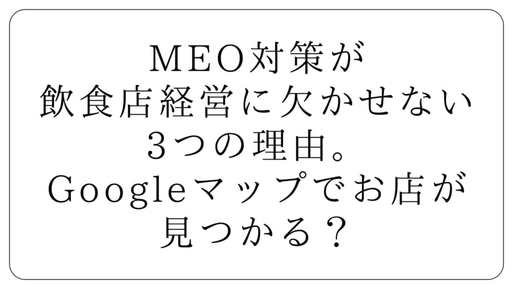 MEO対策が飲食店経営に欠かせない3つの理由。Googleマップでお店が見つかる?