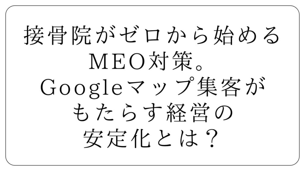 接骨院がゼロから始めるMEO対策。Googleマップ集客がもたらす経営の安定化とは?