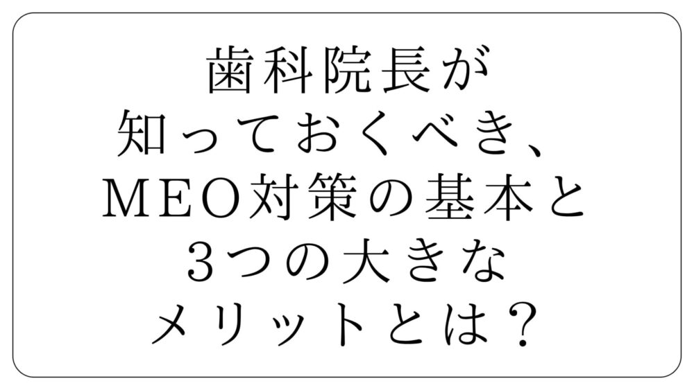 歯科院長が知っておくべき、MEO対策の基本と3つの大きなメリットとは?